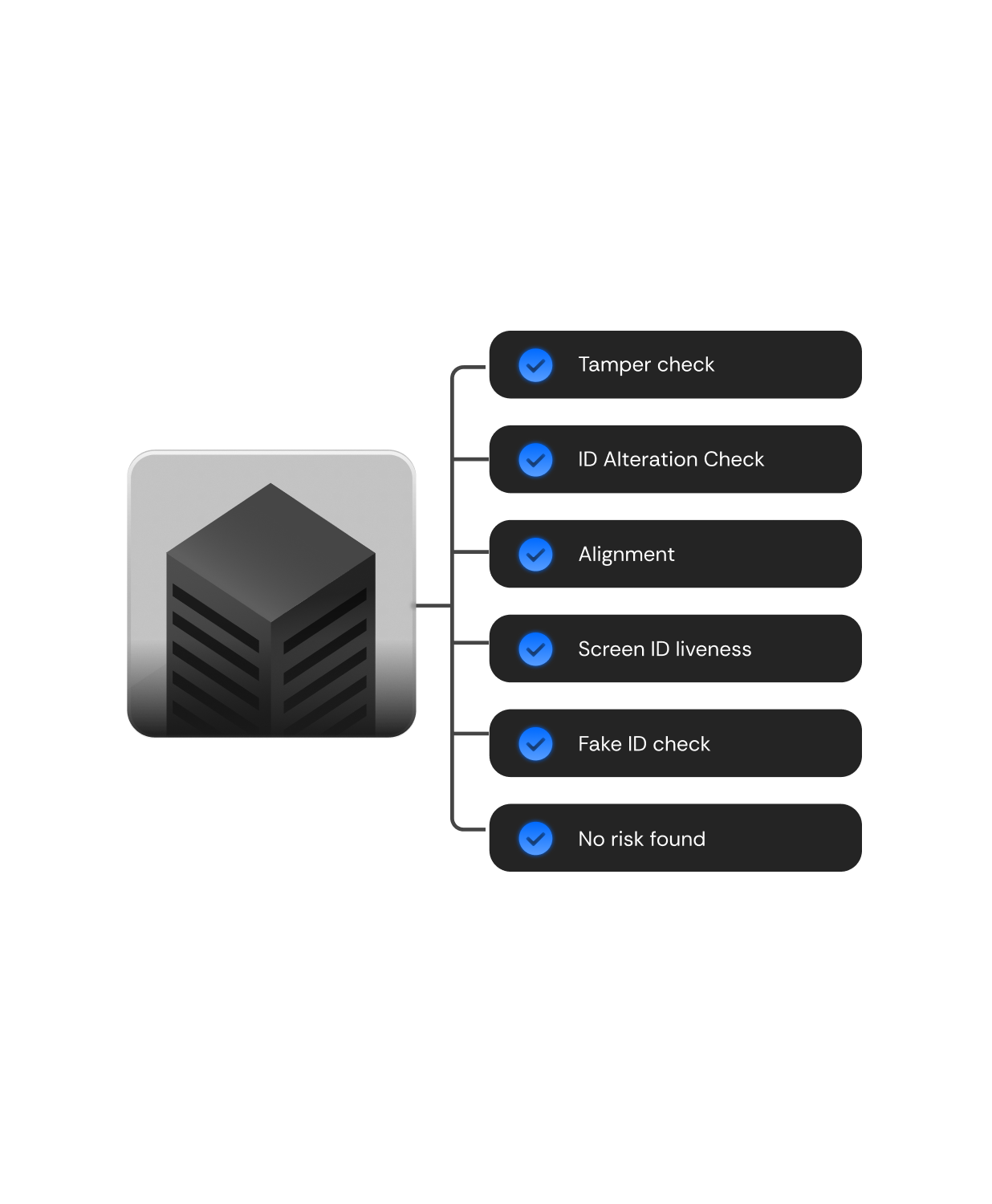 Our multi-layer identity verification solution combines custom-built AI technology, deterministic identity checks, and advanced deepfake detection.