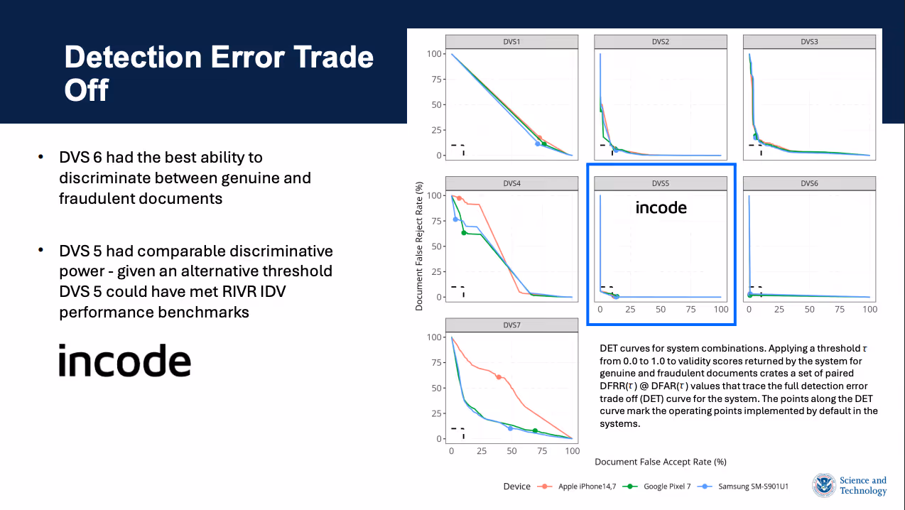 "DVS 5 [Incode] had comparable discriminative power - given an alternative threshold DVS 5 [Incode] could have met RIVR IDV performance benchmarks."