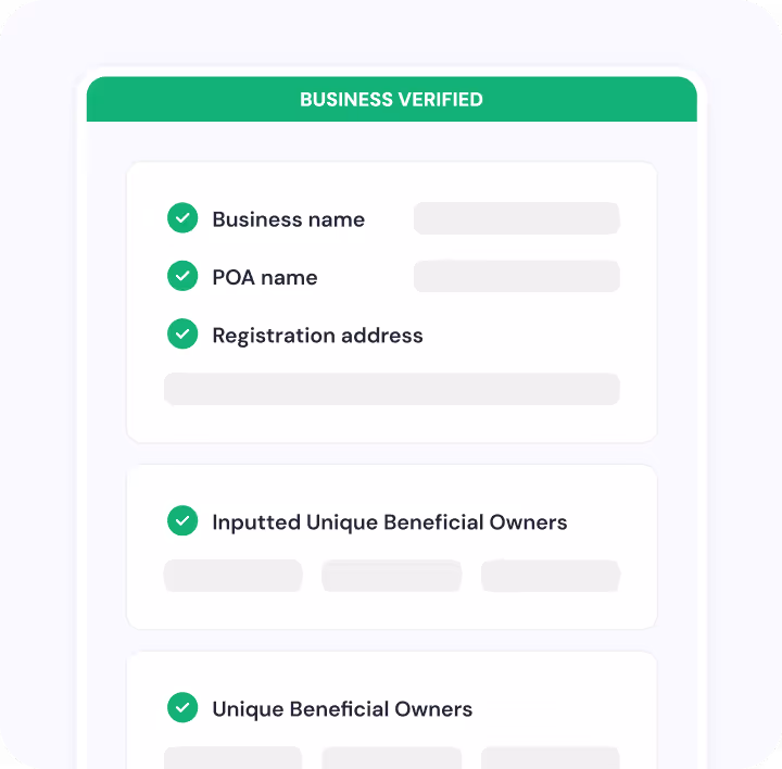 Verify businesses and their owners (KYC) to guarantee compliant business onboarding.