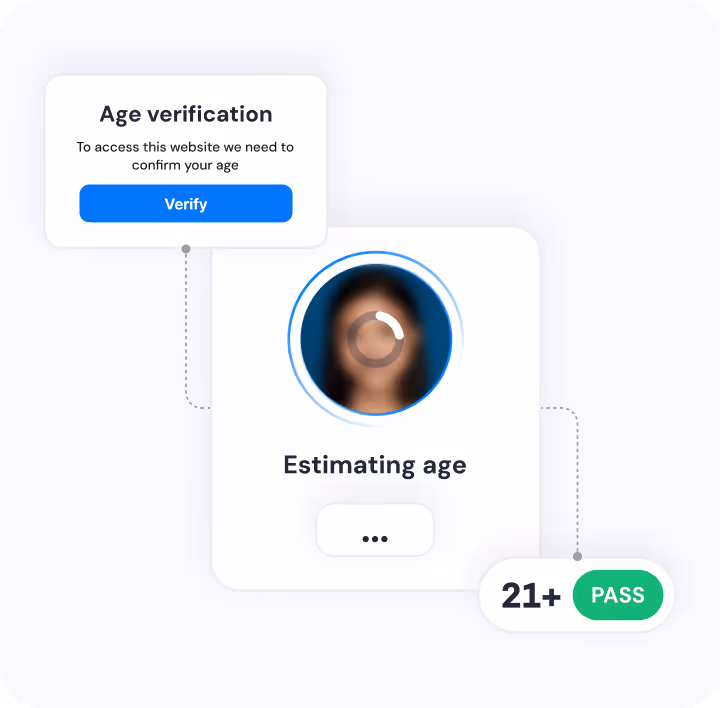 Confirm a user meets the required legal age with an AI scan of a live selfie—no personal data needed.