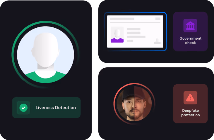 Our multi-vector AI defense analyzes device, camera, behavior, and facial signals in real time. We validate camera feeds, inspect OS/sensor integrity, flag bot-driven patterns, and run depth–RGB, motion checks, all under the hood, with zero extra steps for genuine users.