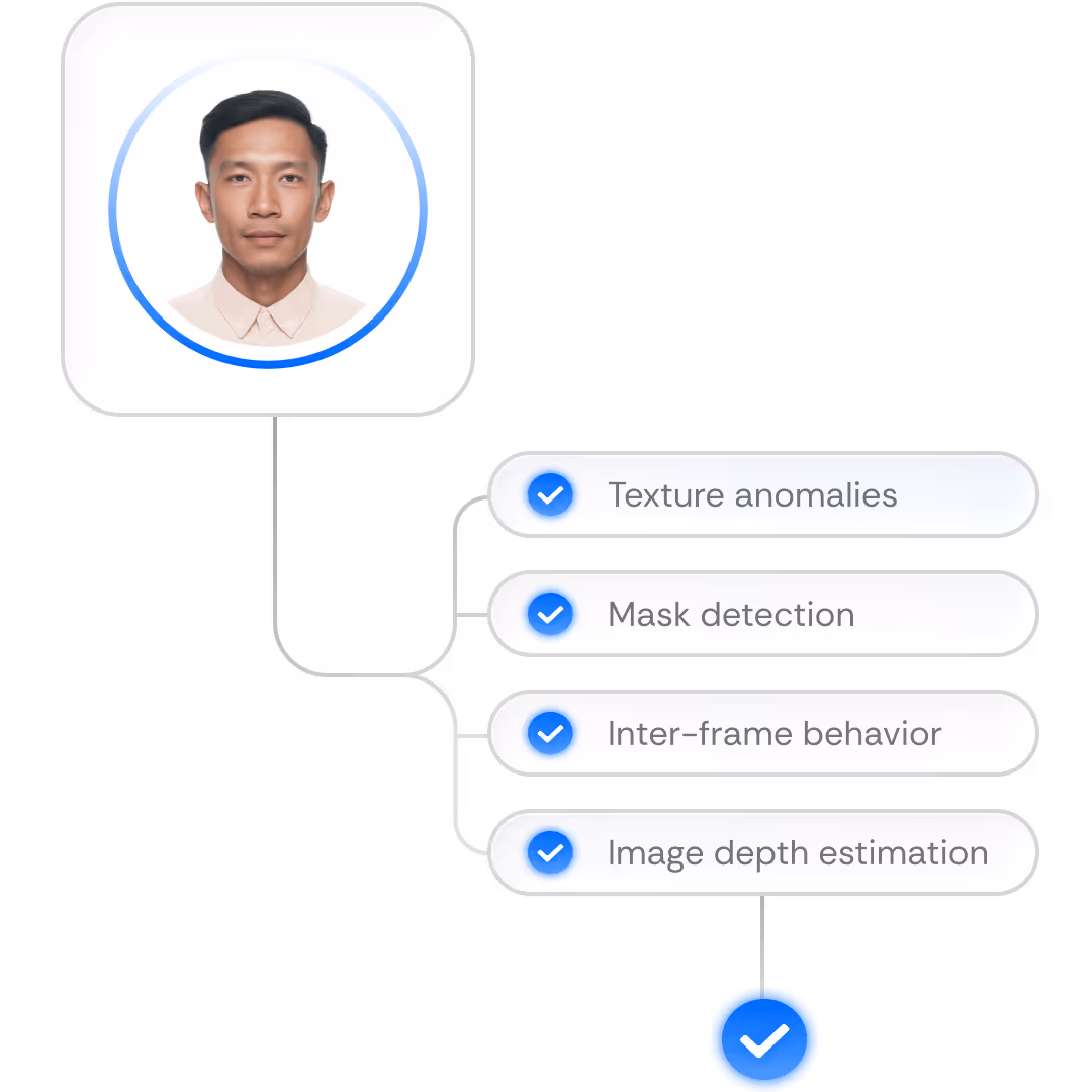 Our advanced liveness detection within Incode Deepsight verifies real people in manipulated or synthetic footage, with no friction or user interaction needed.